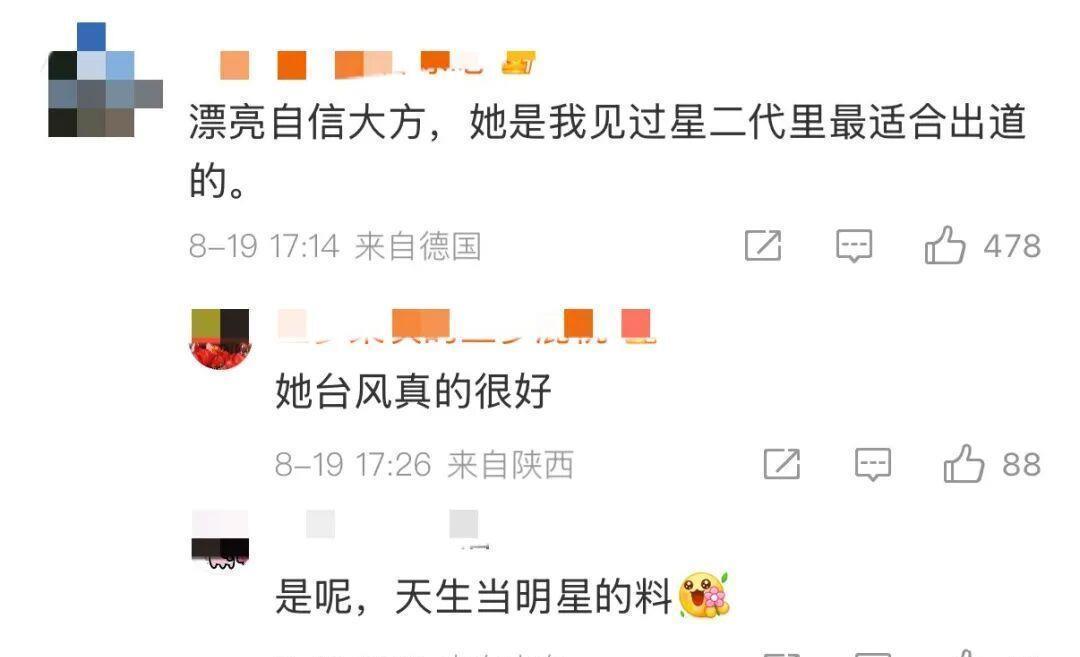 还有网友评价:漂亮自信大方,是星二代里最适合出道的。